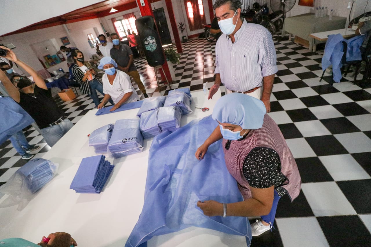 Autoridades provinciales recorrieron el taller de la empresa Zutt Protect, en el que unas 20 mujeres confeccionan elementos de bioseguridad, entregaron herramientas para fortalecer la huerta comunitaria del barrio 110 viviendas y herramientas para la cooperativa Mujeres en pie, que trabaja en el mantenimiento de infraestructura junto al Municipio.