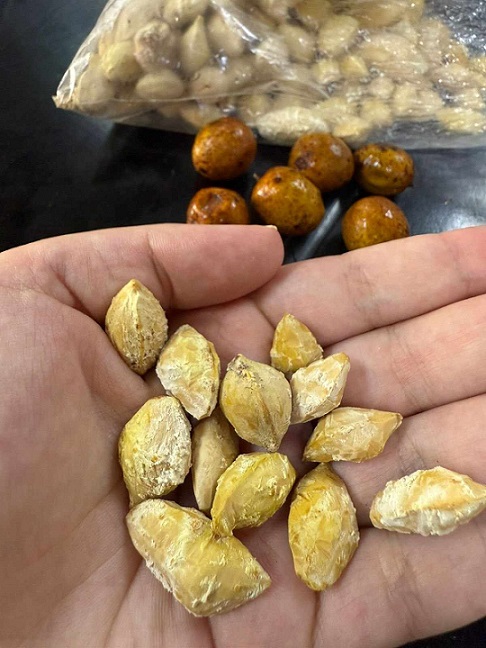 El chañar (Geoffroea decorticans) es una leguminosa arbórea ampliamente distribuida en la región chaqueña argentina. Cada árbol puede producir aproximadamente 10 kg de frutos entre diciembre y febrero. Sus frutos son drupas carnosas de color pardo-rojizo que alcanzan entre 2 y 5 gramos, conteniendo un carozo blanquecino y leñoso que protege la semilla.