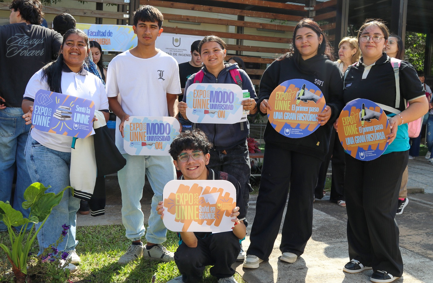 El staff de la secretaría portaba indumentaria con la leyenda UNNE para orientar a las distintas propuestas simplificando a cada paso la experiencia de conocer y tener una primera aproximación a la vida universitaria.