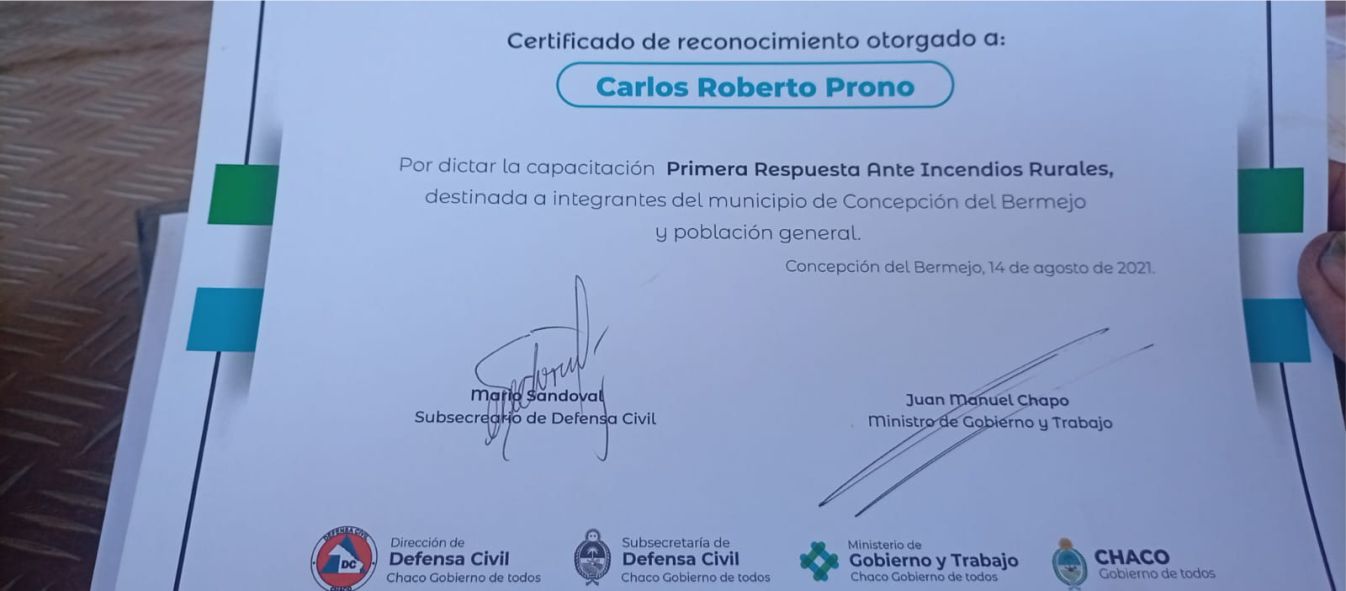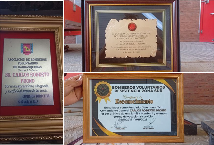 Prono con su larga trayectoria, formador de varias generación de bomberos a través de sus año, y un incansable luchador por el sistema bomberil del Chaco, siendo reconocido por su trayectoria por diferentes instituciones civiles y gubernamentales.