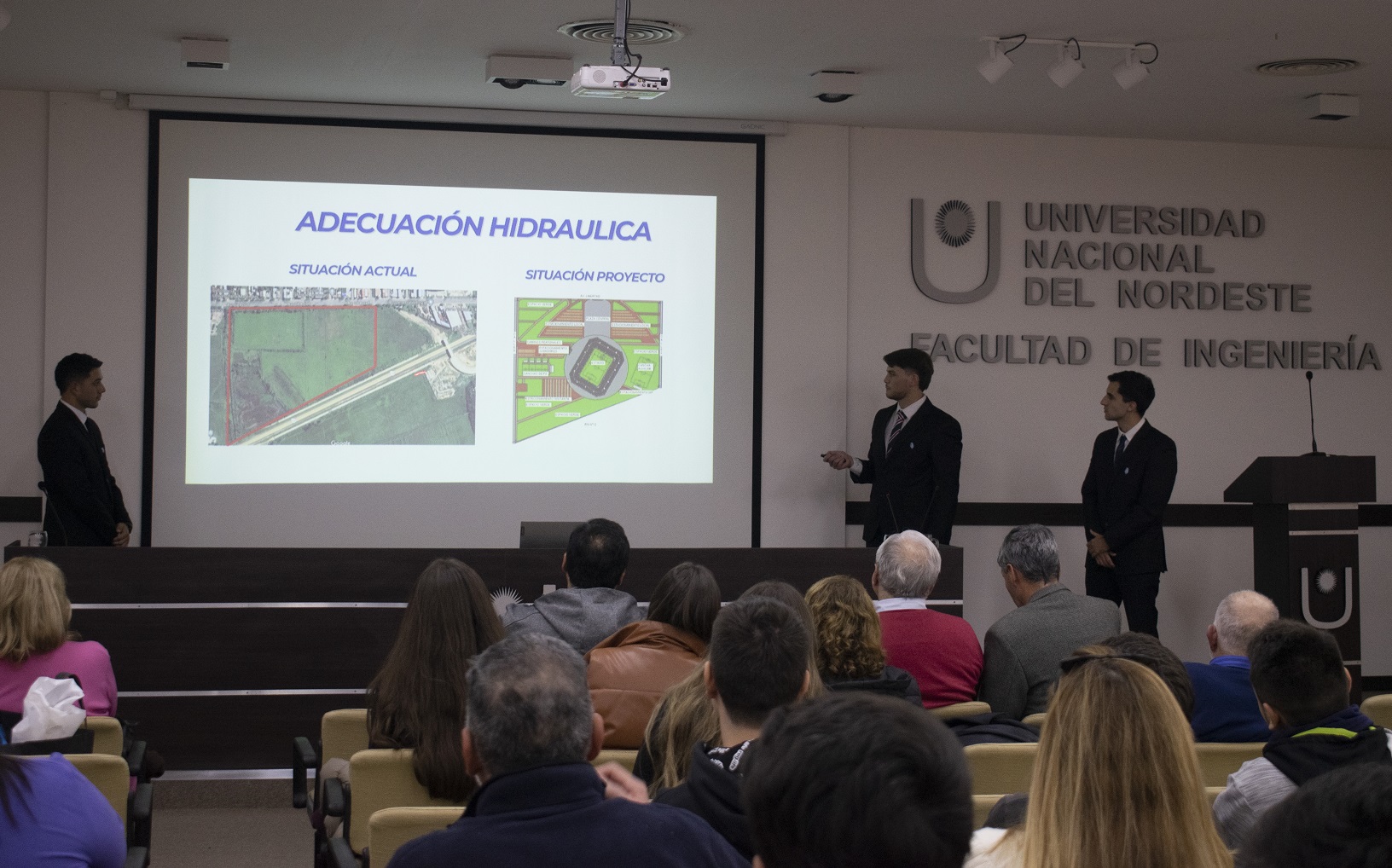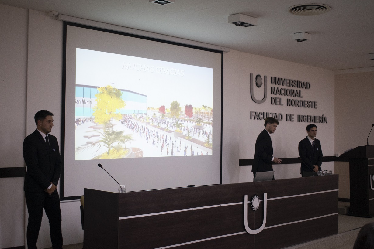 “Estadio General José de San Martín” se denomina el anteproyecto con el cual Sebastián Jacobo, Gonzalo Martín Soria y Francisco Agustín Hurtado se recibieron como flamantes ingenieros civiles en la Facultad de Ingeniería de la UNNE.