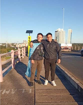 Voluntarios patrullando el puente General Belgrano: Axel V. Y Matías A, conocidos como Los Ángeles del Puente