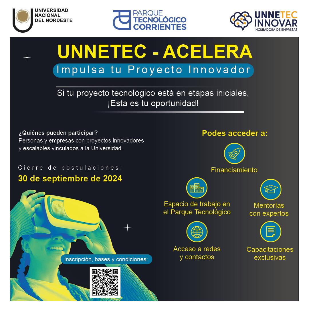 “No pierdas la oportunidad de acelerar tu proyecto innovador con el apoyo de UNNETEC – ACELERA”, destacan los organizadores de esta nueva iniciativa de la UNNE.