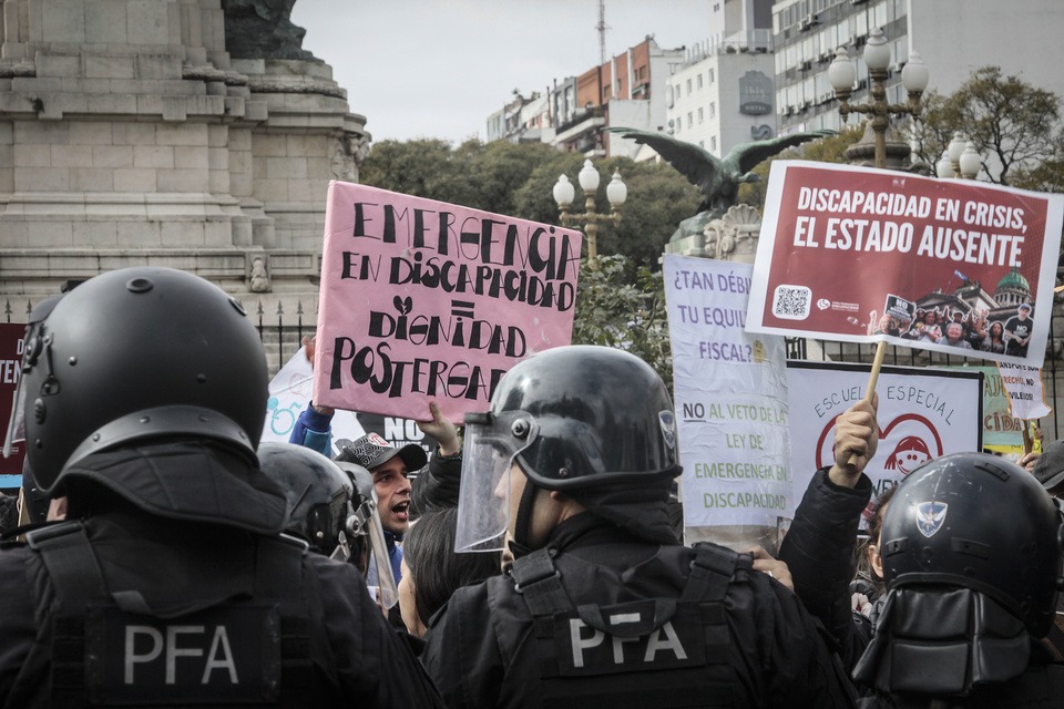 “Fue sumamente angustiante ver tanto despliegue de Gendarmería, Policía, que nos empujaban. Quedé en medio de la policía y los chicos, no podía creer que nos traten como si fuéramos chorros, terroristas. Éramos familias, personas con discapacidad, prestadores que tratamos de defender los derechos de los chicos. Nos dolió muchísimo el trato que hemos recibido por parte del presidente de la Nación”, declaró quien también es madre de un menor de edad con discapacidad.